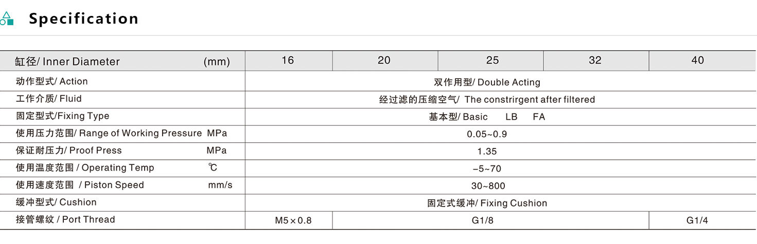 EMALD Slim Cylinder of Aluminiium Alloy(Double Rod Type)