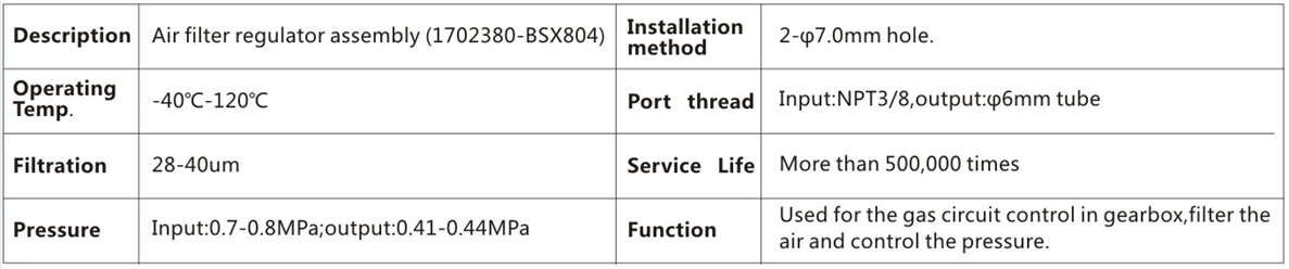 Air filter regulator assembly(17002380-BSX804)