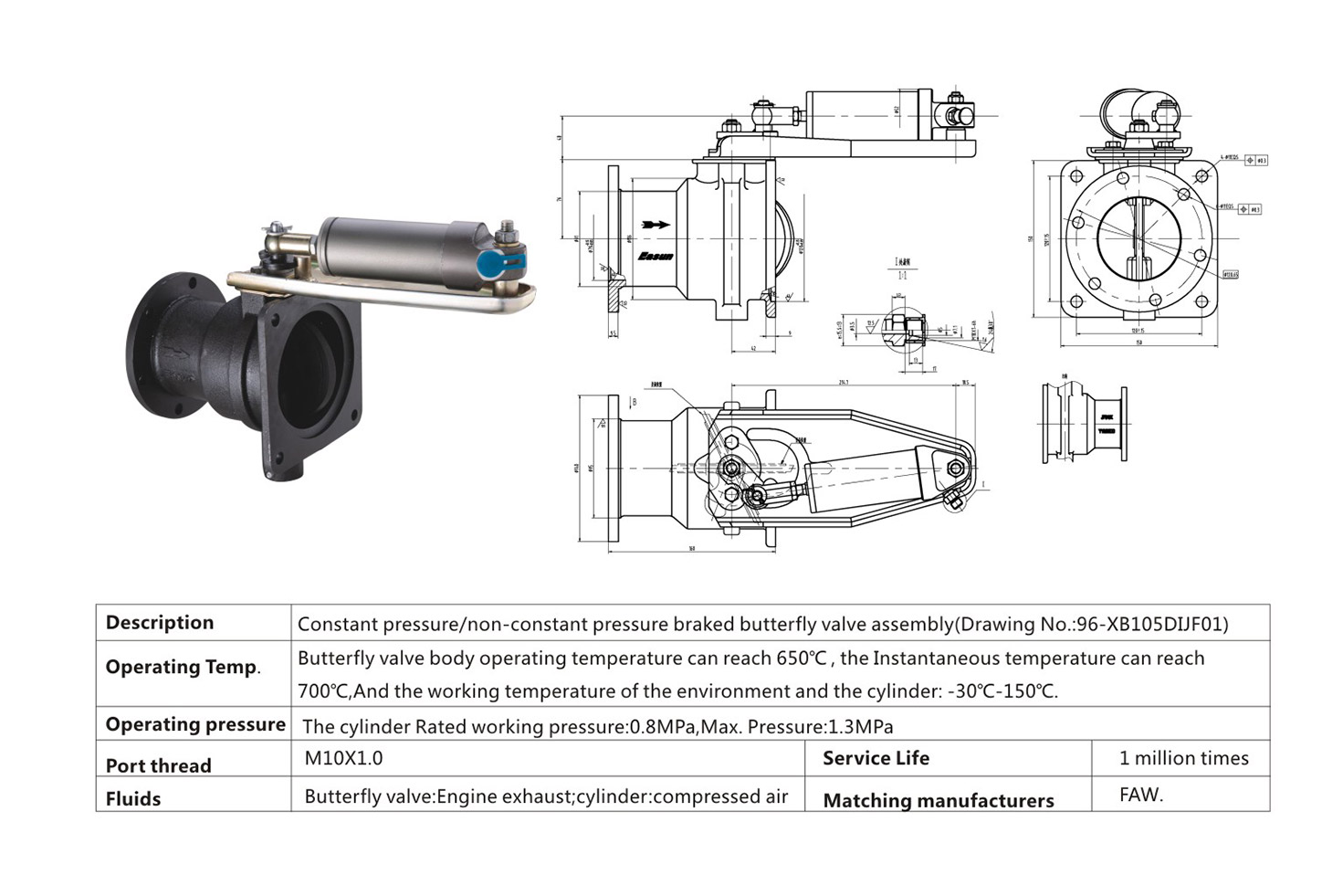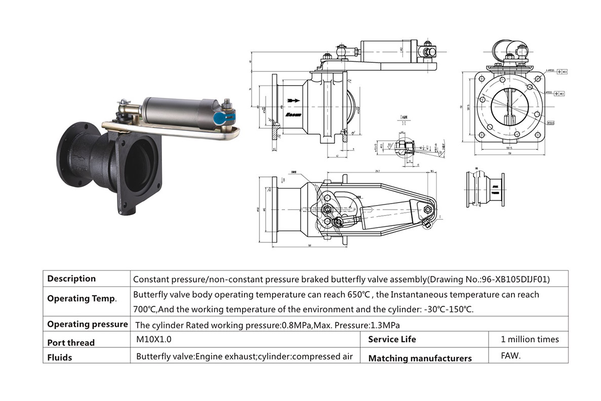 Constant pressure/non-constant pressure braked butterfly value assembly