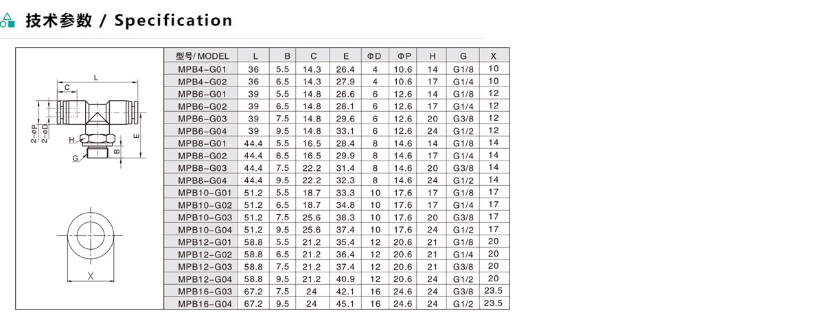 MPB-G T型螺紋三通