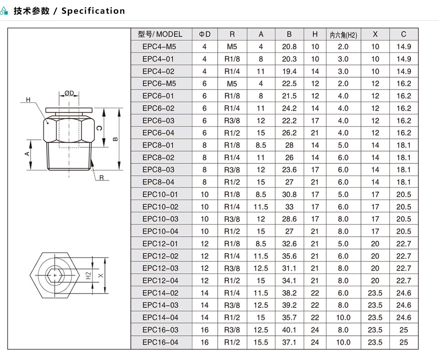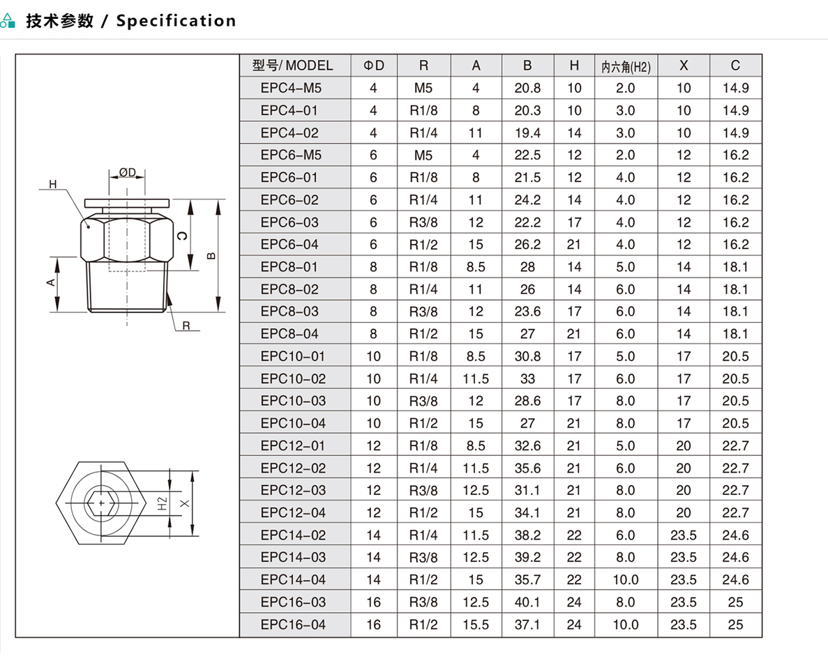 EPC/APC/ZPC螺紋直通
