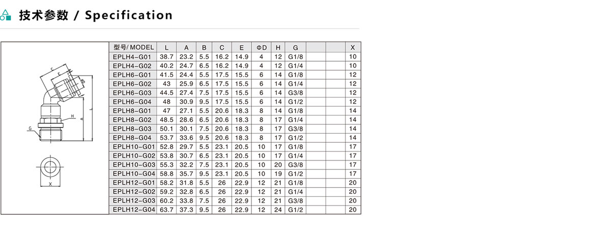 EPLH-G/APLH-G 45°螺紋二通