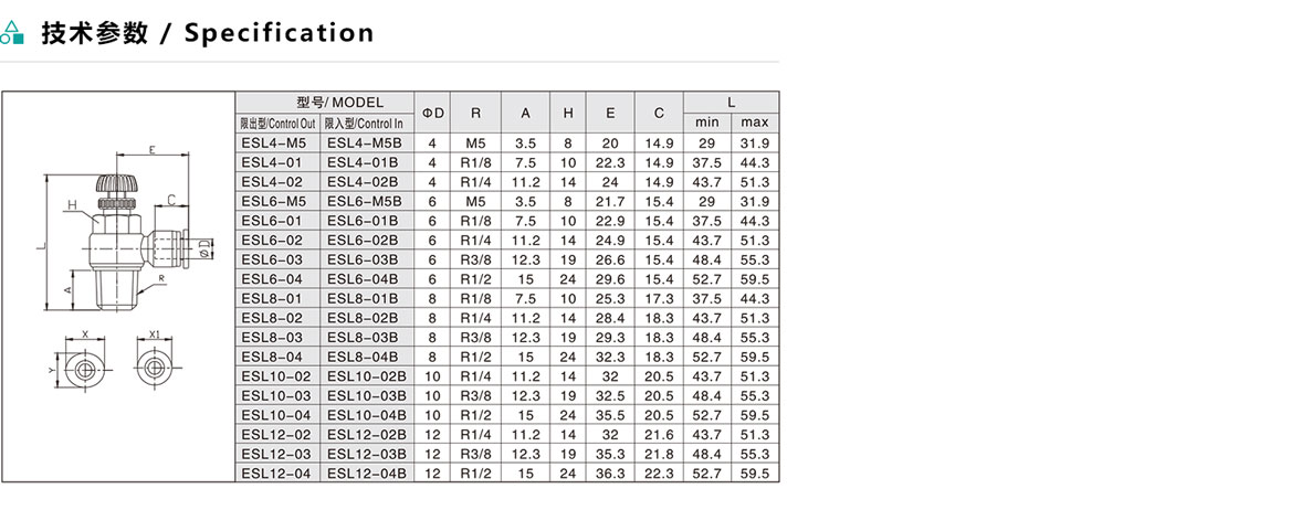 ESL/ASL 公制直接安裝L型節流閥