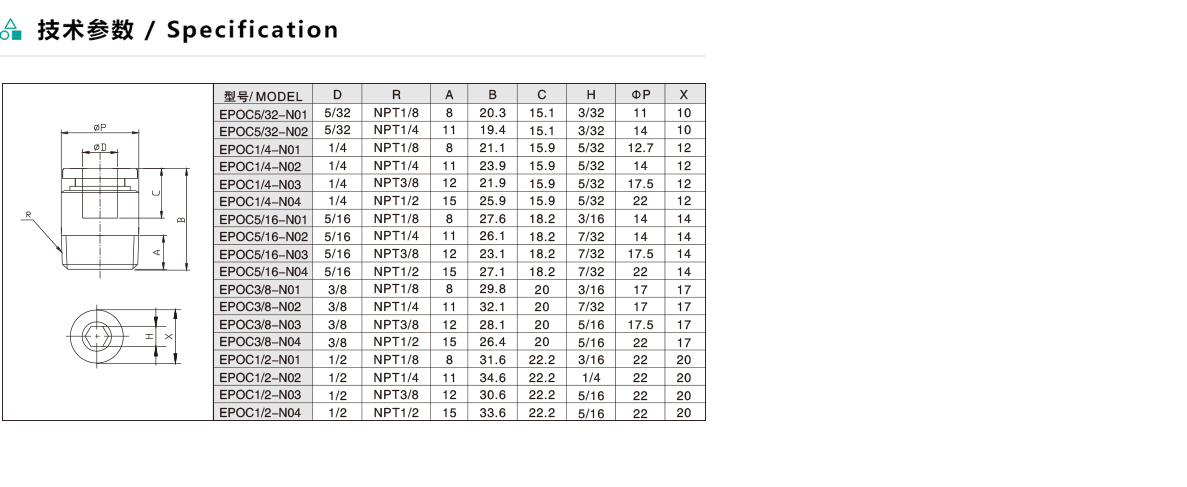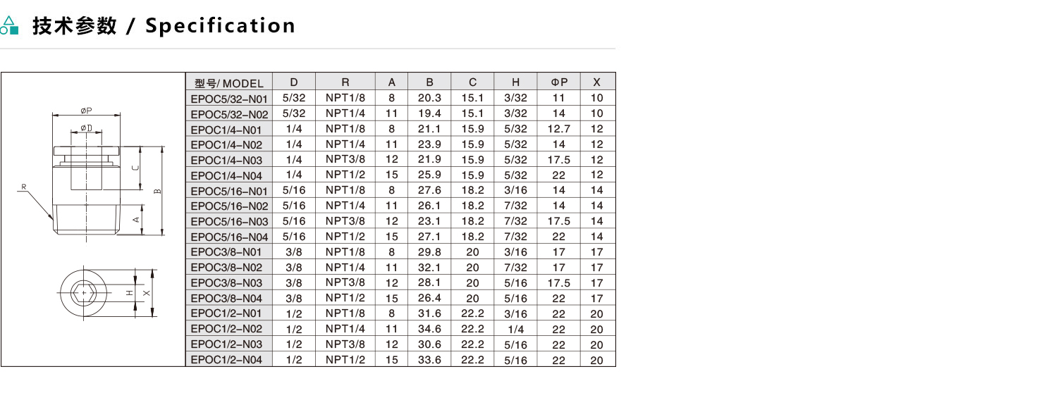 EPOC/APOC 圓螺紋直通