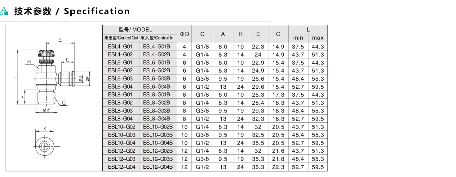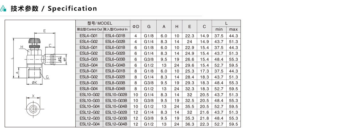 ESL/ASL 公制直接安裝L型節(jié)流閥