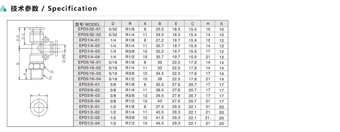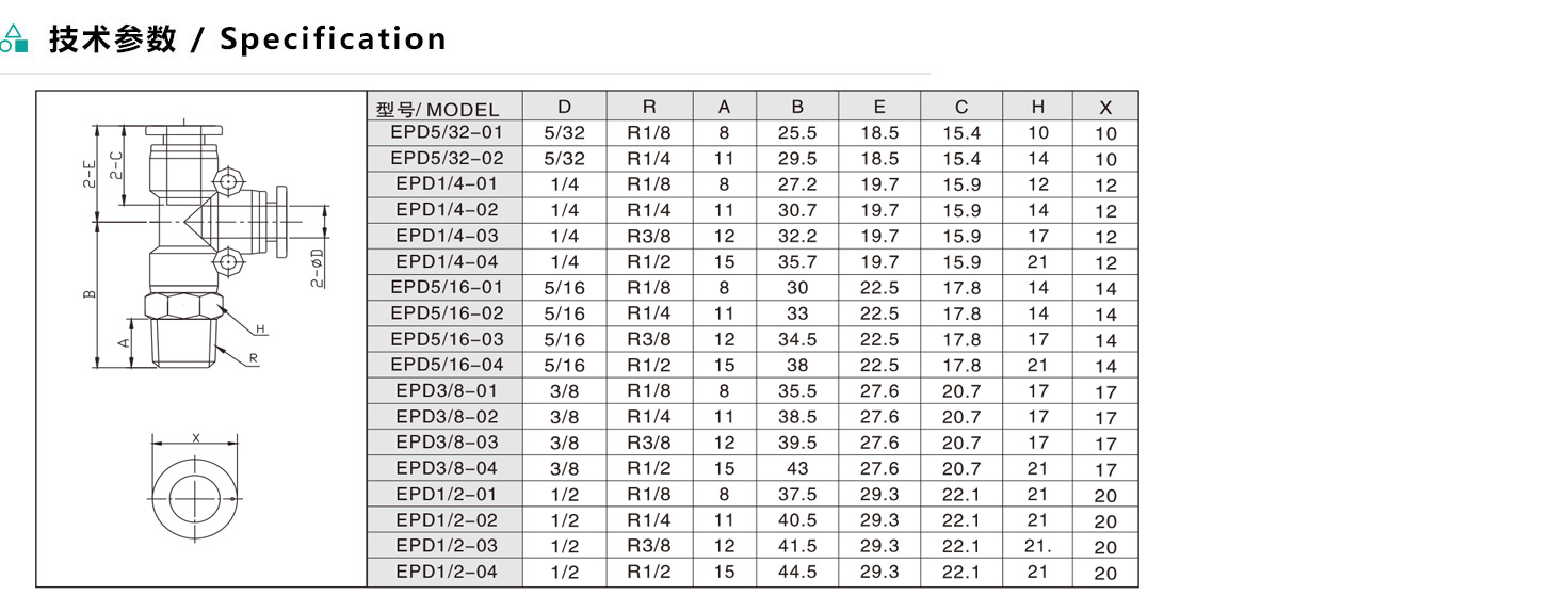 EPD/APD T型分支螺紋二通